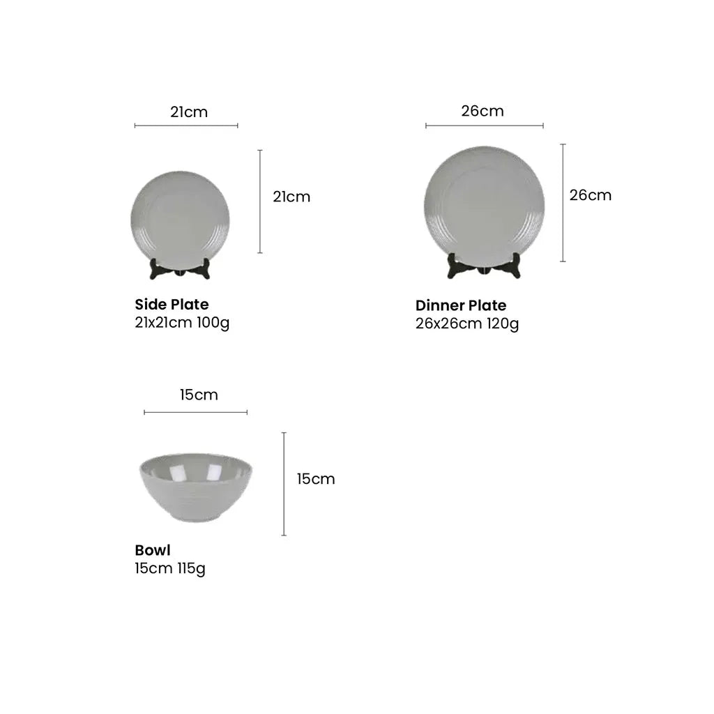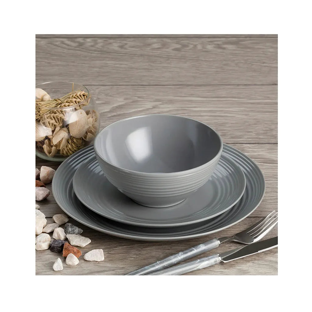 Dive into a world of culinary elegance with Flamefield's Cool Grey 12 Piece Set. Synonymous with sophistication, this collection flawlessly balances contemporary aesthetics with timeless charm, making it "the conversation starter at every meal". Perfectly suited for the starlit dinners outdoors or the intimate gatherings indoors, the Cool Grey hue is both versatile and mesmerizing. "Turn every meal into a statement with Flamefield." Infused with an edge design that mirrors true ceramic, it's hard to believe that such artistry also promises break-resistance. Cleaning up post-feast is a breeze, thanks to its dishwasher compatibility. Yet, remember to treasure its charm away from microwaves. Ready to elevate your dining experience? "Flamefield – Where elegance meets every bite."