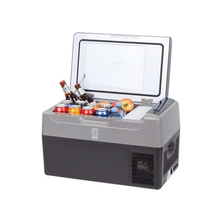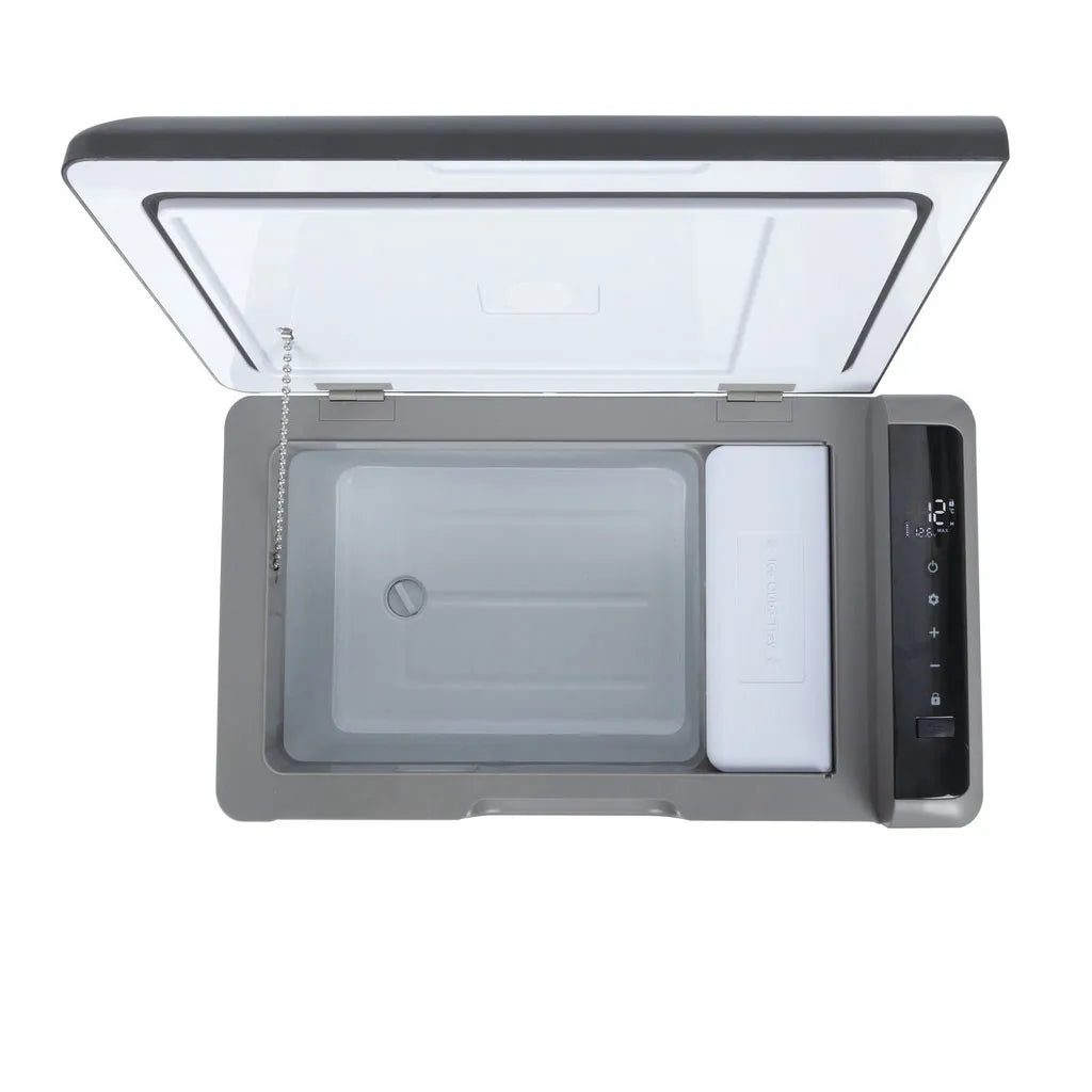 Provides all the performance of a full function car fridge in a compact size. The internal 22 litre capacity is ideal for storing food and beverages in cars, caravans, and boats. It even includes a small compartment for an ice tray which is included.