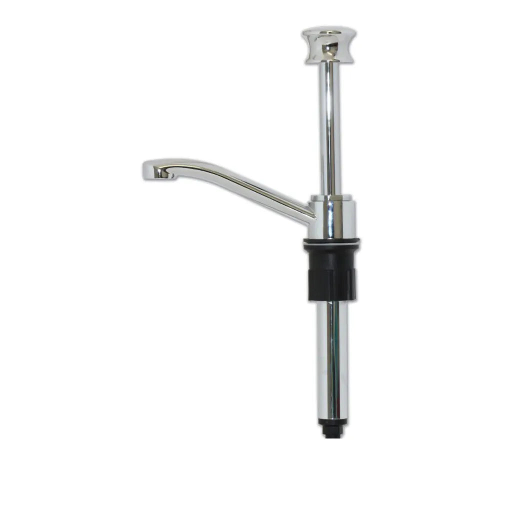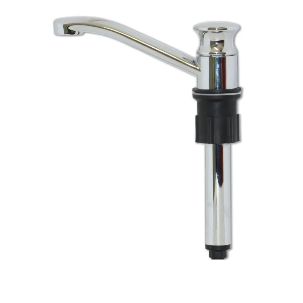 Stylish and robust chrome plated brass hand pump for drinking water.