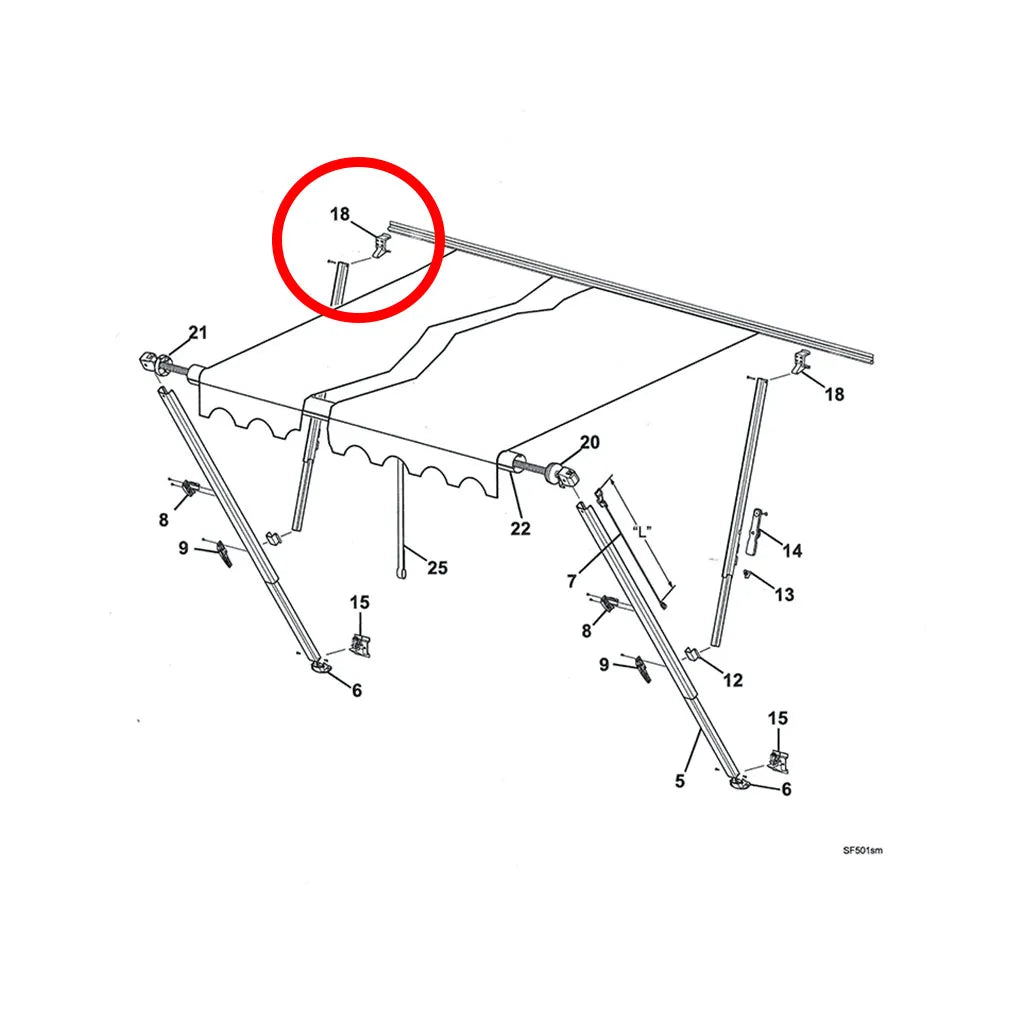 This Carefree top bracket is used to connect the brace arms to the awning.