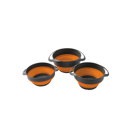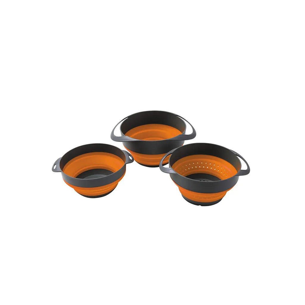 The Kiwi Camping Coppalsible Bowl & Colander set is flexible, lightweight and durable. It's collapsible and nesting design allows for compact storage, and is easy to clean, BPA-free plastic