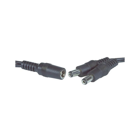 These leads consist of a 2.1mm DC male socket to 2 x 2.1mm DC female plugs.