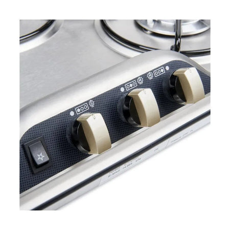 The Dometic 3 Burner Hob with Glass Lid - 12V Ignition is a compact cooktop perfect for cooking in small spaces such as in your motorhome. It delivers exceptional cooking performance using three burners with high heat output and excellent burner efficiency.