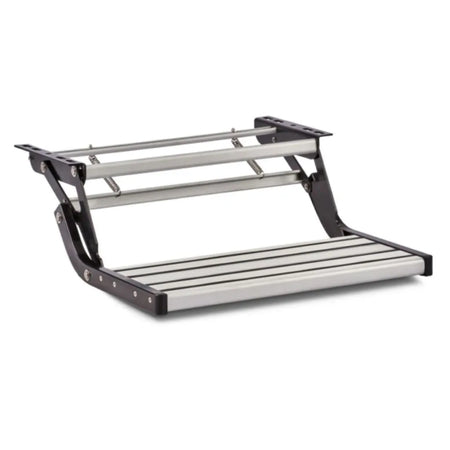 The Dometic Folding Step is purpose-designed to provide a safe entry and exit to motorhomes and caravans. When travelling, the Dometic Folding Step can be easily folded under the chassis in one easy action. Constructed from heavy-duty aluminium, the Dometic Folding Step can be relied upon for bearing weight up to 225 kg. That means it’s possible to carry a loaded fridge into the vehicle and not worry about whether the step can cope with the weight.