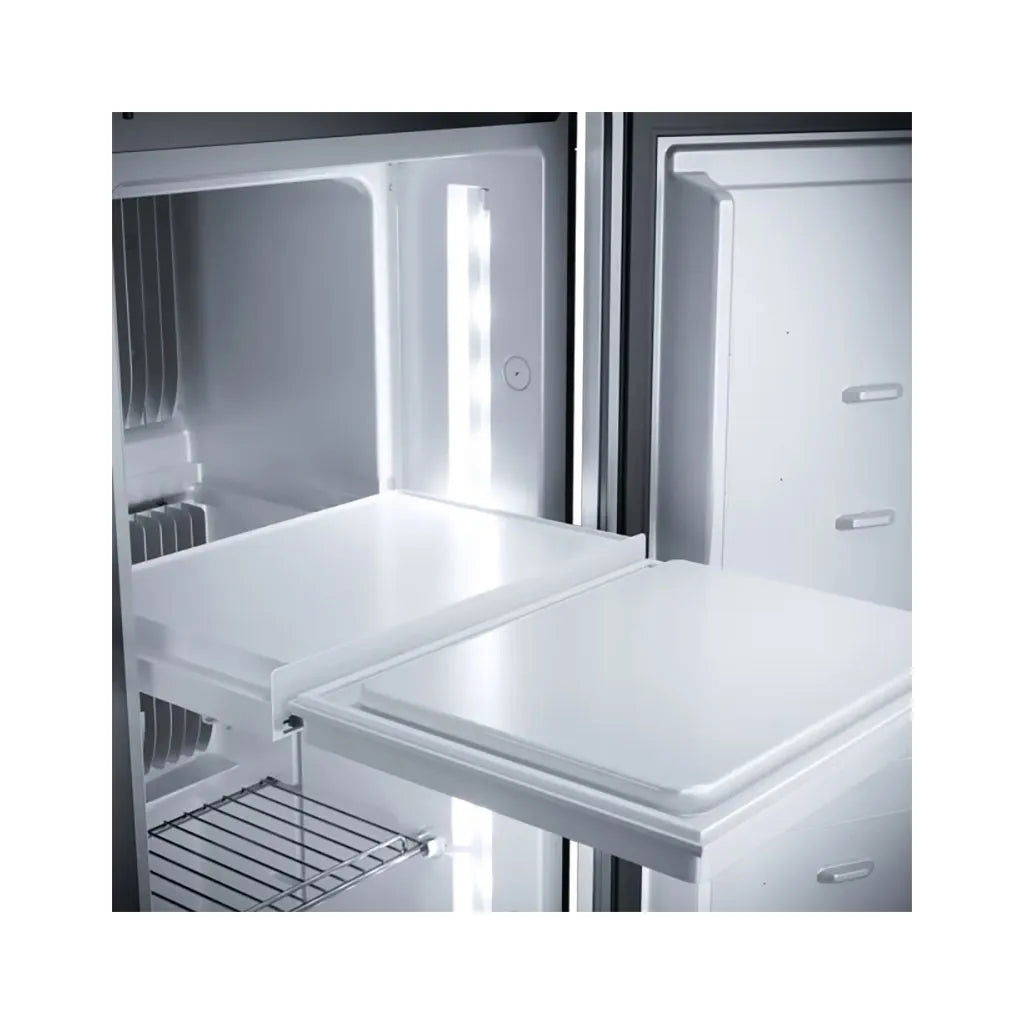 fridge is perfect for mobile kitchens in caravans and motorhomes. With a 133 L capacity, it combines style, functionality, and advanced technology to keep your food fresh while saving valuable space.