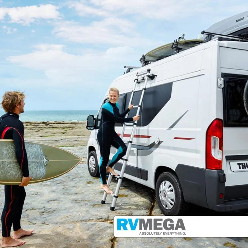 Telescopic ladder for easy access to roof-mounted accessories - Safely installed using fixation kit.