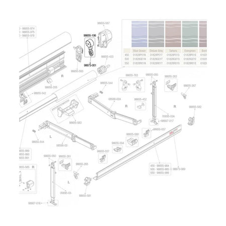 This Winch is used to open and close the awning, it also includes the Winder Loop: 98673-001. It can be easily replaced by sliding it off the square roller shaft after the End Cap has been removed.