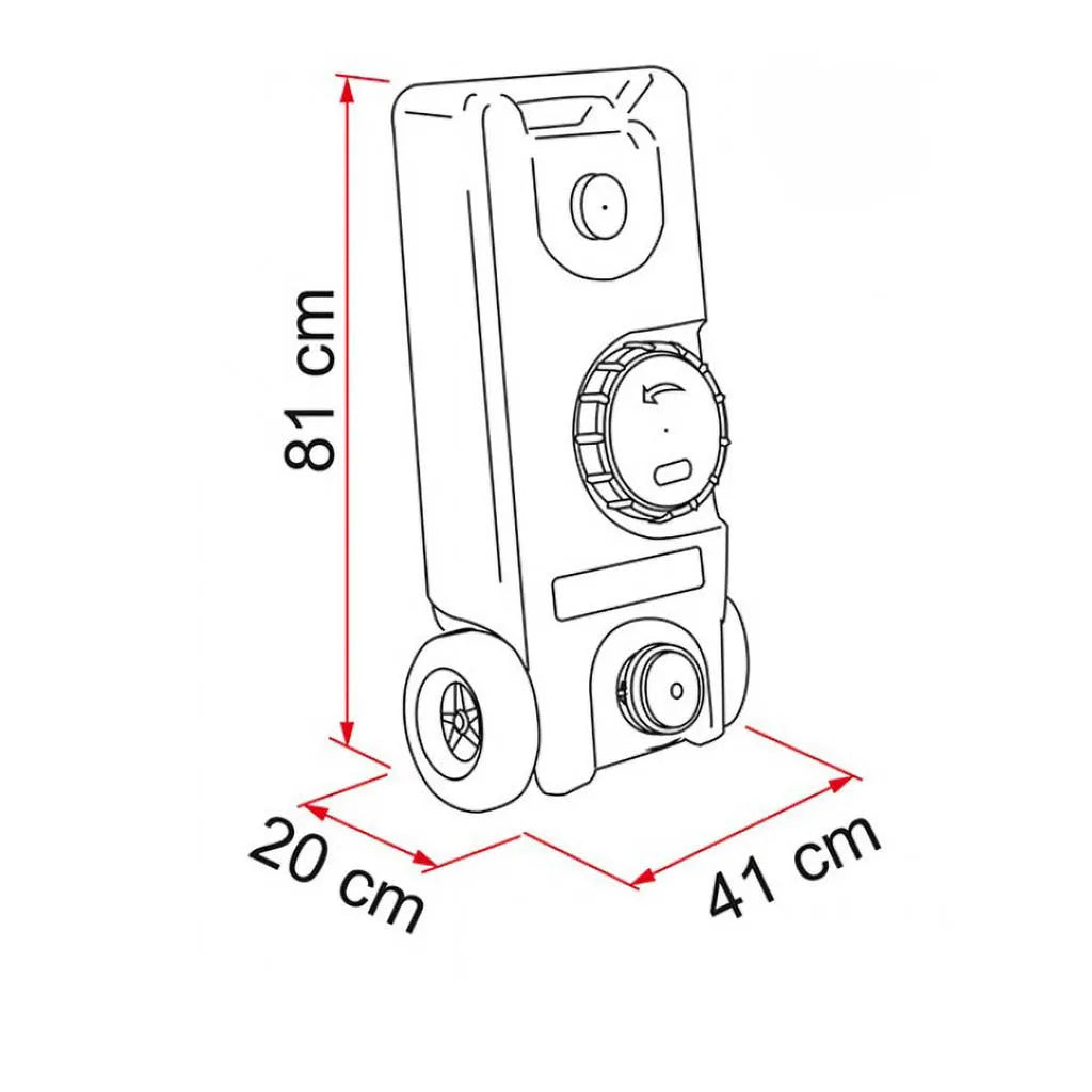 Transport your drinking water without moving your vehicle or caravan. With easy grip handle and two large wheels that make transportation easy, even on gravel.