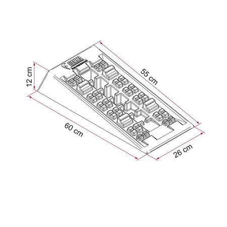 Keep your motorhome perfectly leveled for improved operation of the equipment when parked on uneven ground. With a rigid surface to grip the vehicles tires. Lightweight, compact and made in rust-proof material, easy to clean and UV-resistant. Will not crack or break like wood.