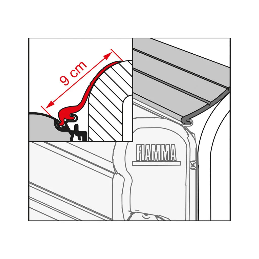 Fiamma Rain Guard Rubber Seal, used to seal the space between the awning and the vehicle wall to prevent water from infiltrating.