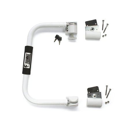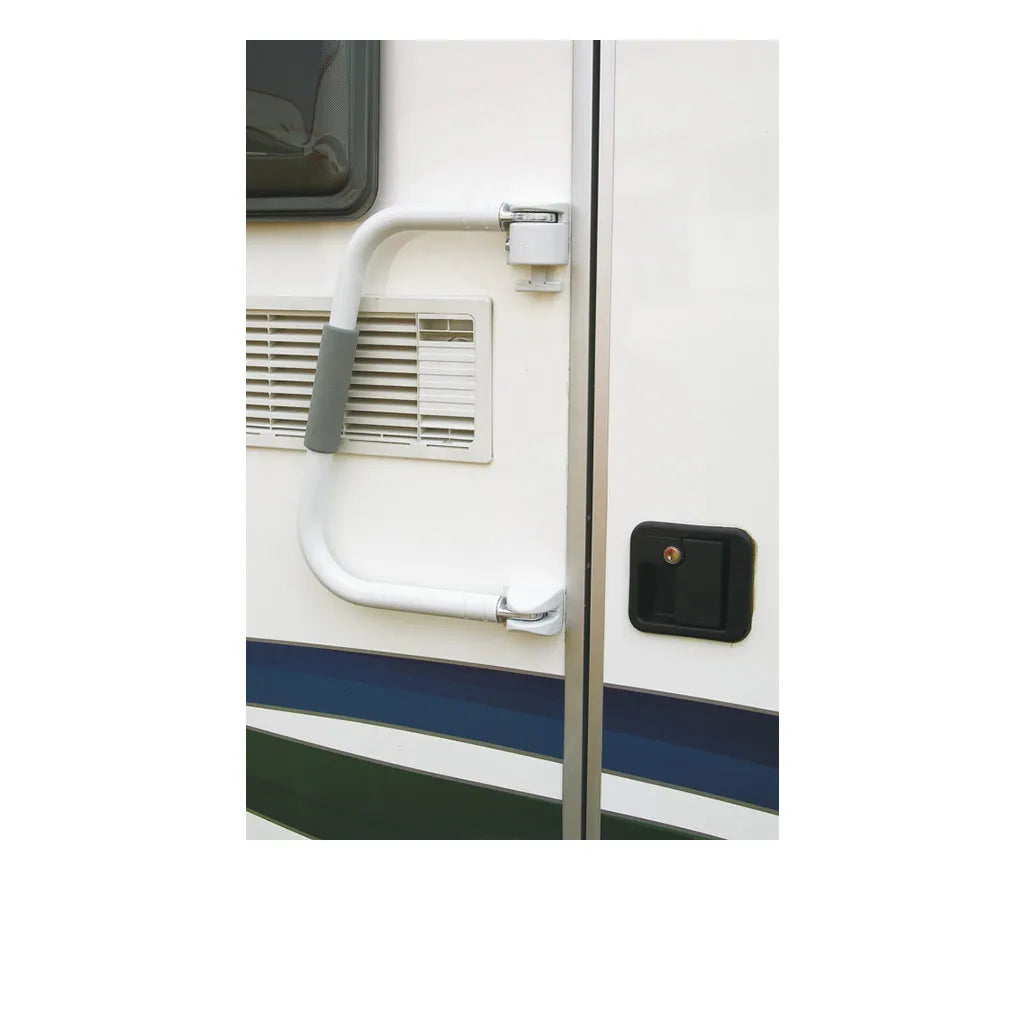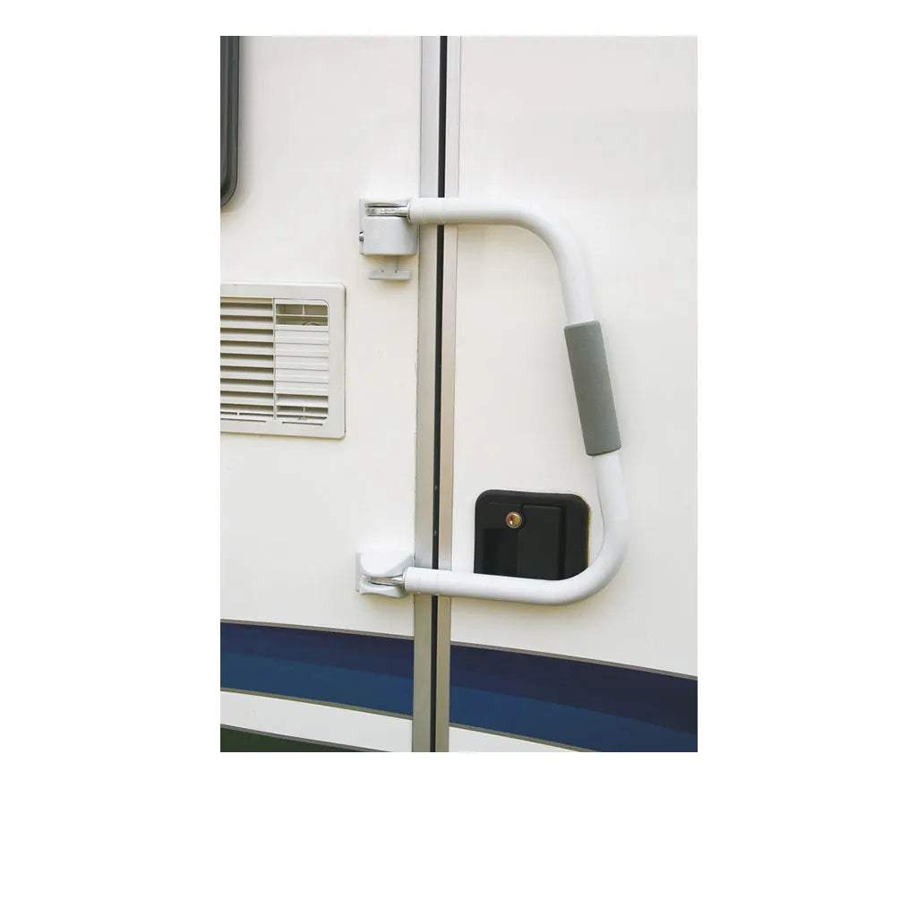 The Fiamma Security Handle is designed to lock across your main door to provide extra security. When closed back onto the door, it works as an antitheft device and prevents accidental opening of the door when travelling. Additionally, when open it increases your safety when getting in and out of the RV. The handle is made out of lightweight, yet strong aluminium and is suitable for doors opening both left and right.