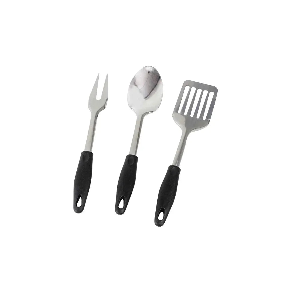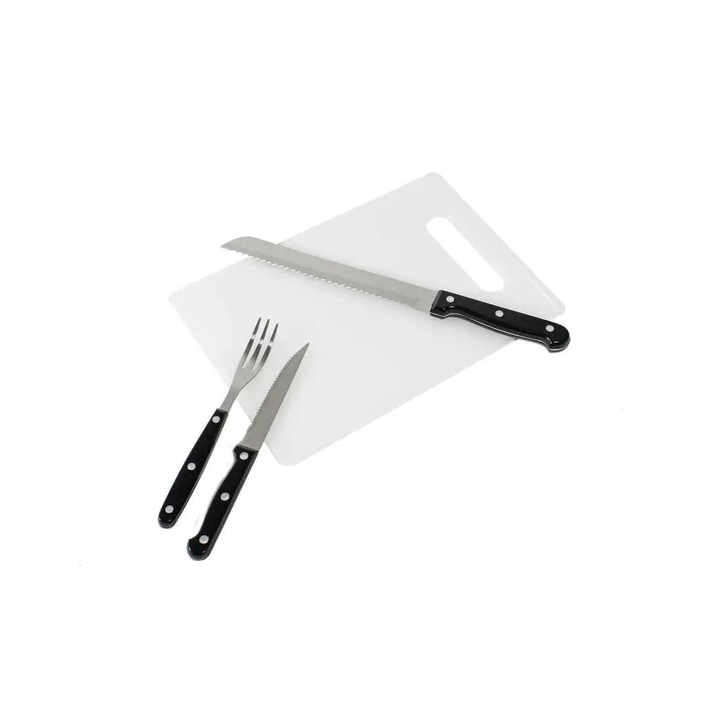 - Camp-ready tools – tongs, spatula, serving spoon, chopping board and opener