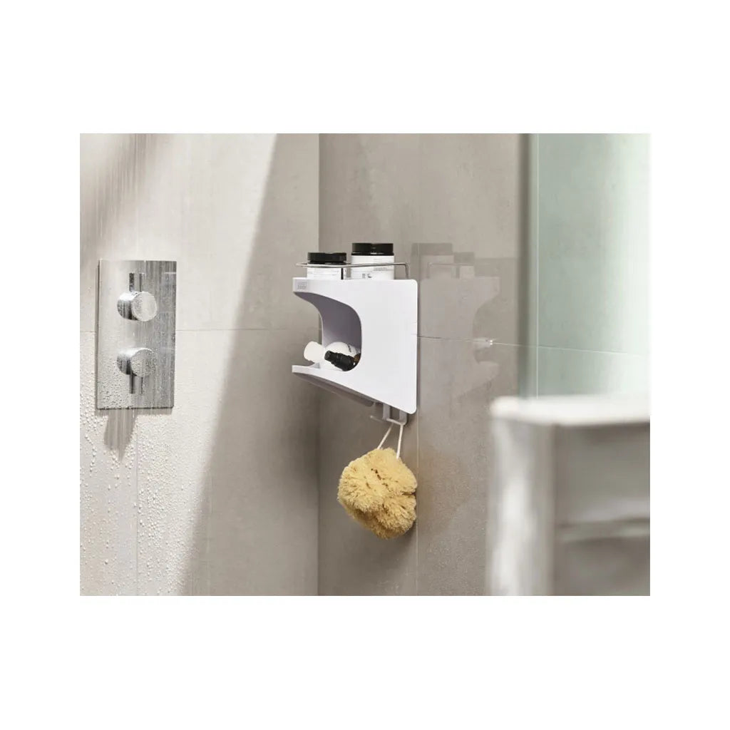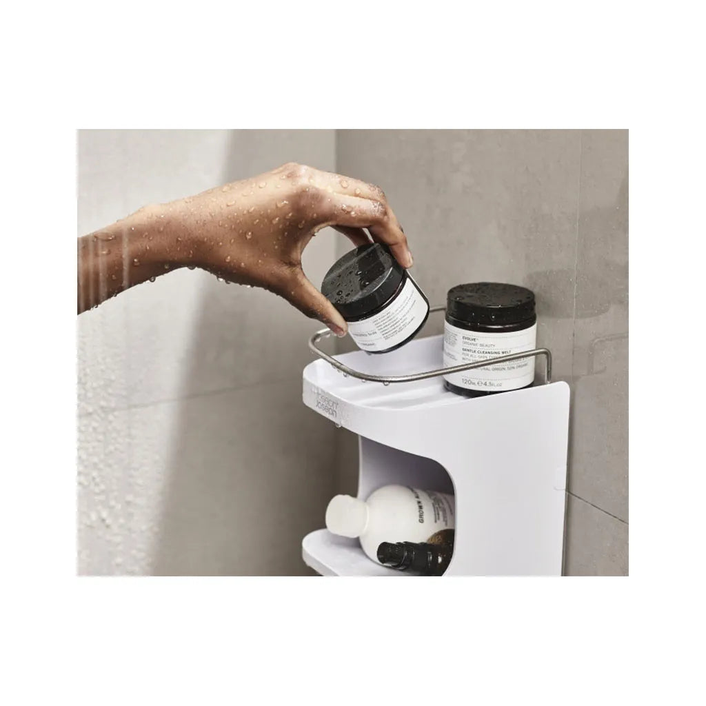 Showers often have very limited space, so the compact, slimline design of this shower shelf provides the perfect storage solution. It features a self-draining top shelf with a stainless-steel rail for standing bottles or a soap bar; an angled, easy-load pocket for quick and easy storage of shampoo and conditioner bottles; and hanging hooks for sponges or razors. The shelf attaches securely to smooth tiles or glass using its powerful, super-grip suction cups, which means it’s fully repositionable without damaging your wall or tiles. Wash and dry by hand.