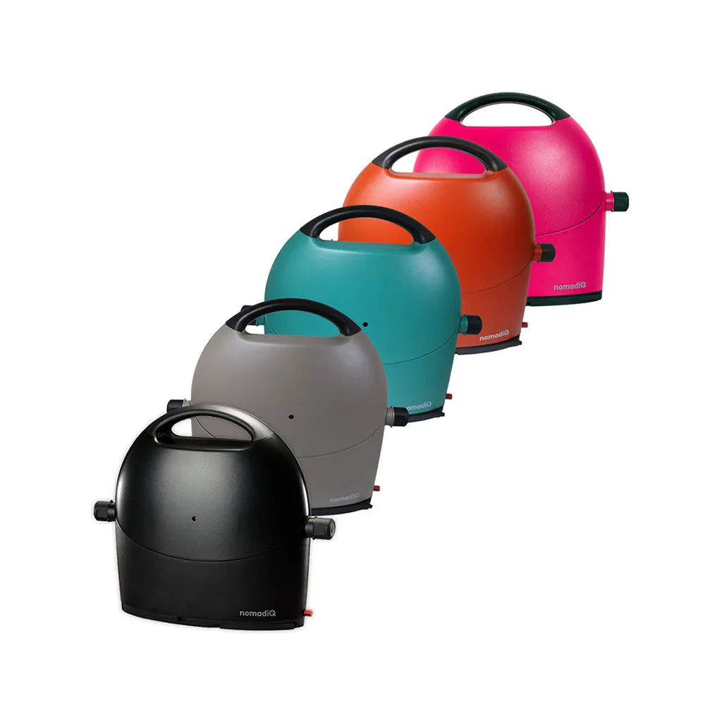 The nomadiQ BBQ includes gas hose, pressure regulator, drip trays, shoulder strap and a manual. Only the gas cannister is needed for hours of grilling pleasure. You can take this lightweight gas BBQ with you anywhere, it has two separate temperature zones and is easy to clean after use.