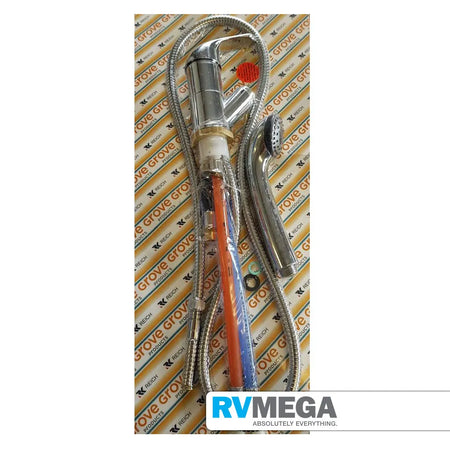 Reich Kama Mixer Tap with Single Lever in chrome with Julia Shower head, is a mono block mixer tap and shower, with pull-out shower head that offers home from home function, contemporary styling and superior quality for any caravan and motorhome washroom.