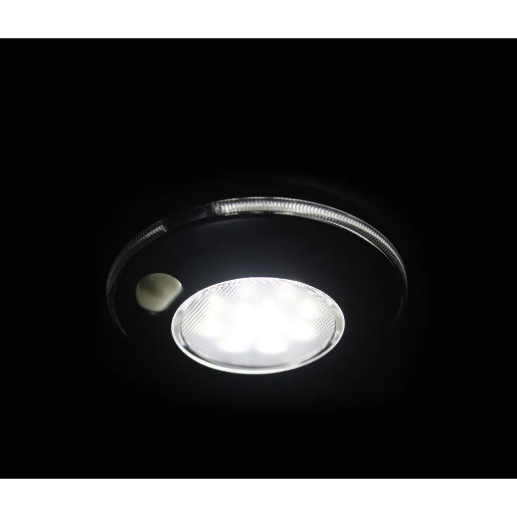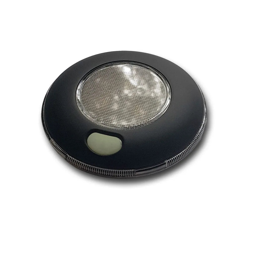 New addition high brightness 801 in Matte Black. This smart round surface mount interior light has extremely low power consumption, and is an excellent general light that you won't have to worry about leaving on, draw is less than a tenth of an amp at 12 volts! Performance is similar to a 20 watt halogen.