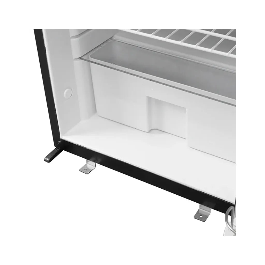 Designed for convenience, the Sphere UCF83R includes a reversible door to suit different layouts, an interior LED light for visibility in low-light conditions, and removable wire shelves for flexible storage. Built for durability, it features shockproof construction to handle rough terrain and operates quietly at =45dB, ensuring minimal disturbance inside your vehicle.