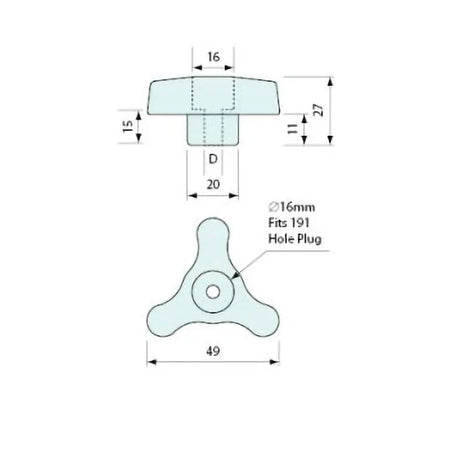 Tri Knob 1/4" BSW Internal Thread Each