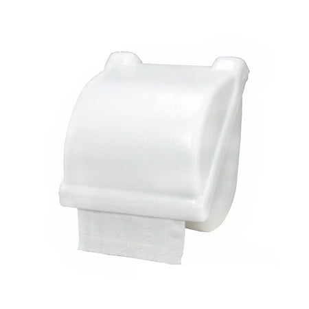 This toilet roll holder encases the paper roll ensuring the paper is kept dry.