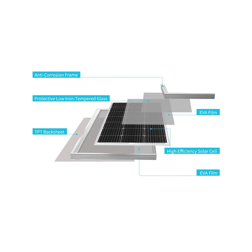 - Anodised aluminum frame, tempered glass, EVA and TPT to provide support and protection from the severest environmental conditions.