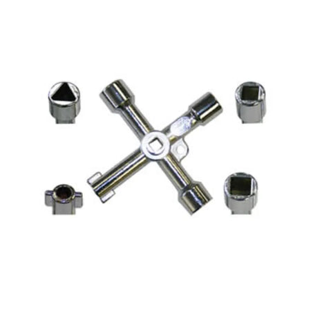 This chrome plated 4 Way Cam Lock Key incudes the following drivers;