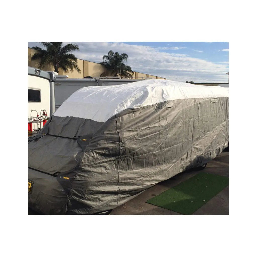 The cover features superior UV stabilised and breathable fabric that blocks out 99.8% of the suns damaging UV rays. On the Caravan, Pop Top and Motorhome models, there are zippered panels along one side. These allow you access to the interior of your RV whilst the cover is on, and because of the eyelets on these panels, they can also double as an awning!