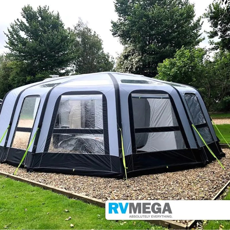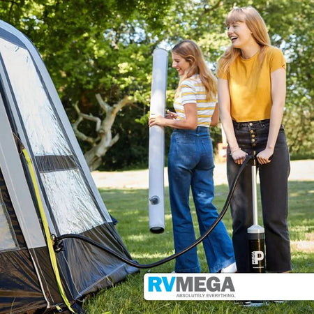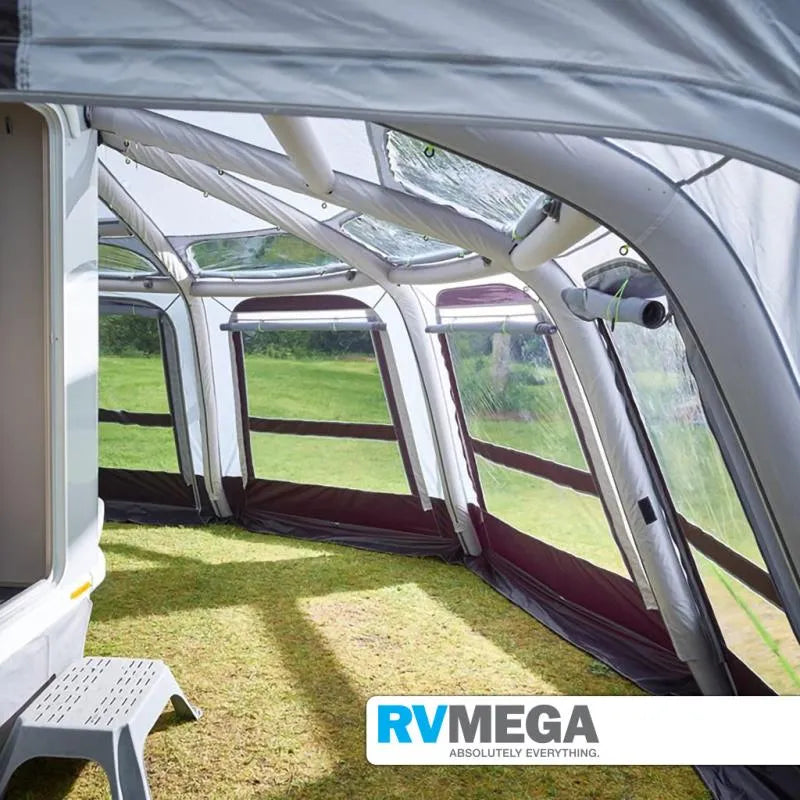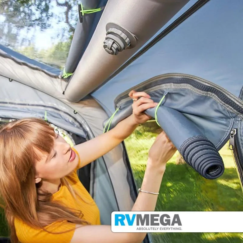The Discovery Air Awning is fitted and pitched just like a standard air awning, and can be erected with two people. We strongly recommend cleaning your awning channel and liberally applying silicon spray before threading the Discovery Air Awning though through the channel. This will make it easier to pull the awning around the rear curve.