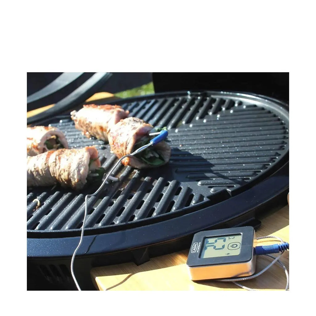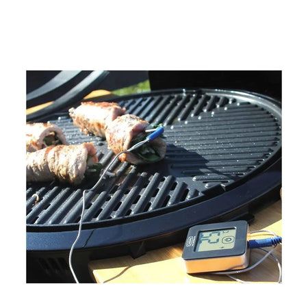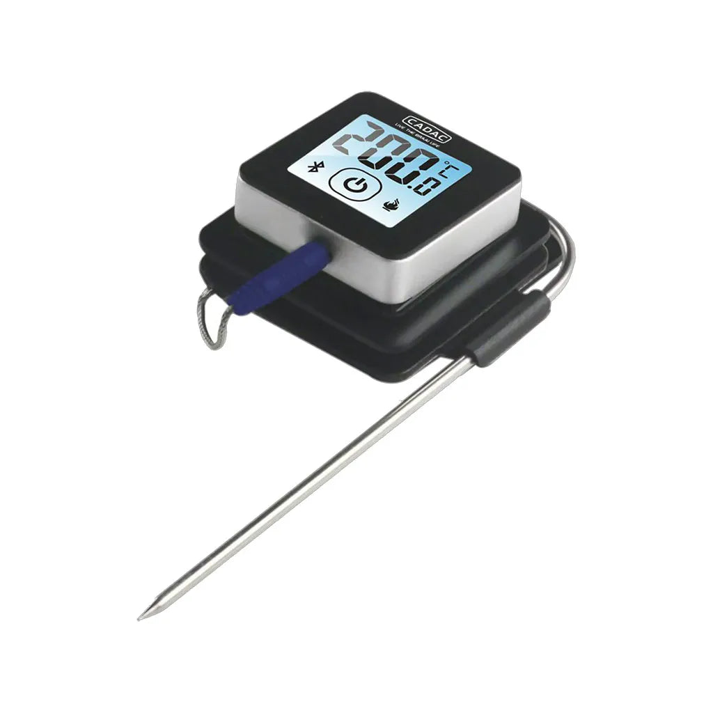 Grill the perfect steak with this magnetic, digital meat thermometer with LED display. Simply hang the Bluethooth thermometer on the side of the barbecue using the magnet. Insert the probe into the meat or fish.