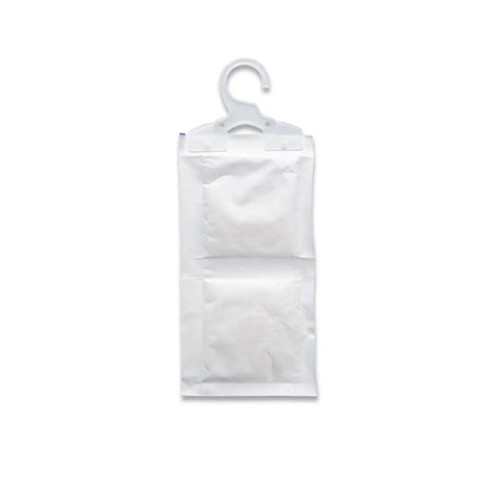 The Camco Hanging Dehumidifier is an easy way to reduce humidity in small, tight spaces such as closets or storage areas. The double packet of moisture-absorbing media features a convenient hanger on top for hooks or clothing racks. The moisture-absorbing agent acts fast to trap humidity and the fragrance-free beads do not impart any scent. One packet of media will absorb up to three times its weight in water and lasts up to one month. Contains two hanging dehumidifiers.