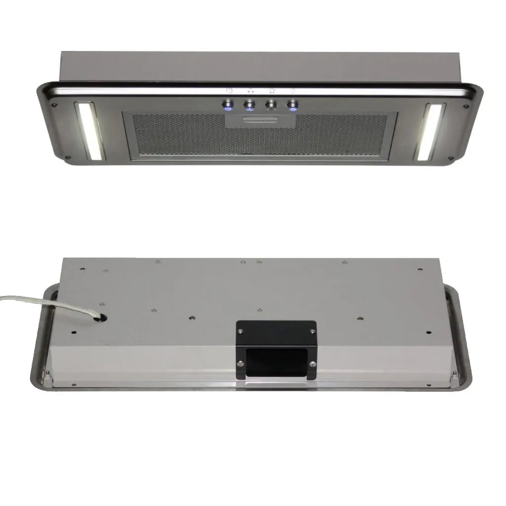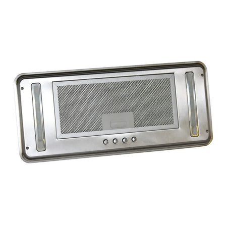 With a Stainless Steel exterior and featuring proven components, powerful twin 2 speed extraction fans, removable filter and stylish custom LED lighting strips; Camecs new 12V Turbo Flush Mount Range Hood is a great addition to any RV.