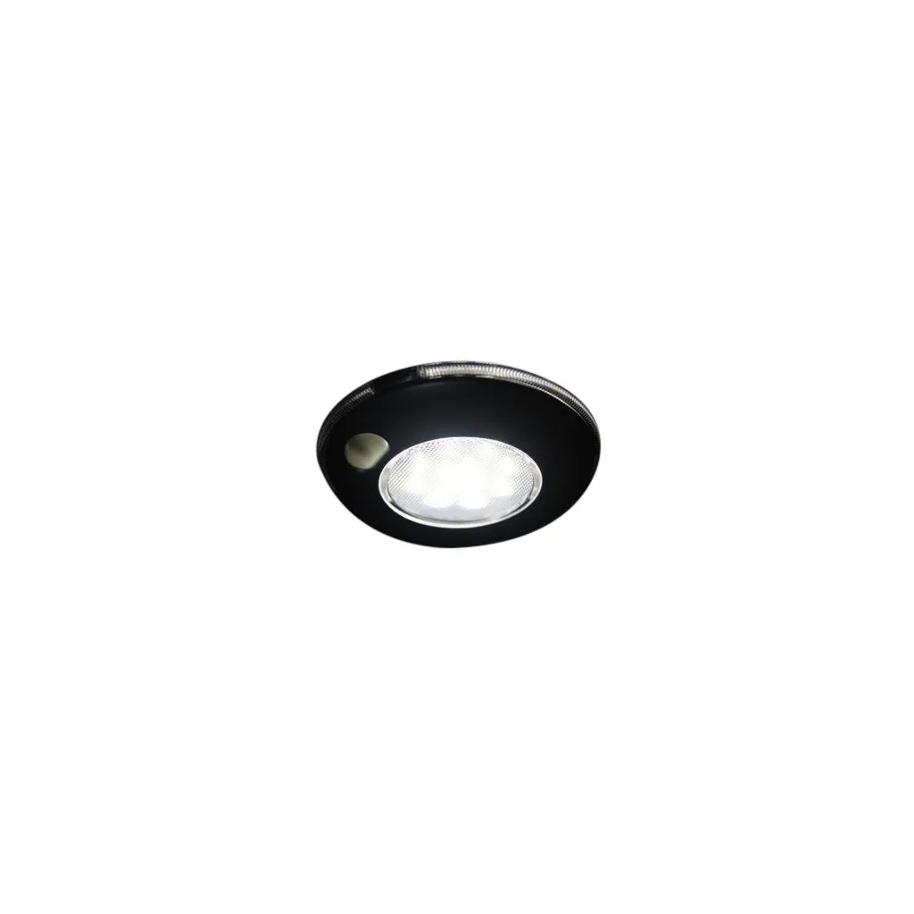 This smart round surface mount interior light has extremely low power consumption, and is an excellent general light that you won't have to worry about leaving on, draw is less than a tenth of an amp at 12 volts! Performance is similar to a 10 watt halogen, similar to a courtesy light in a car, it's not really intended as a task/reading light.