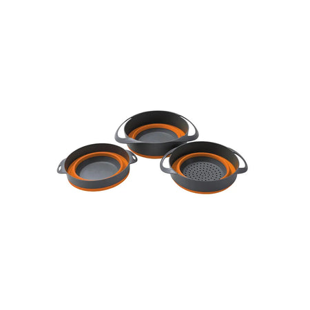 The Kiwi Camping Coppalsible Bowl & Colander set is flexible, lightweight and durable. It's collapsible and nesting design allows for compact storage, and is easy to clean, BPA-free plastic