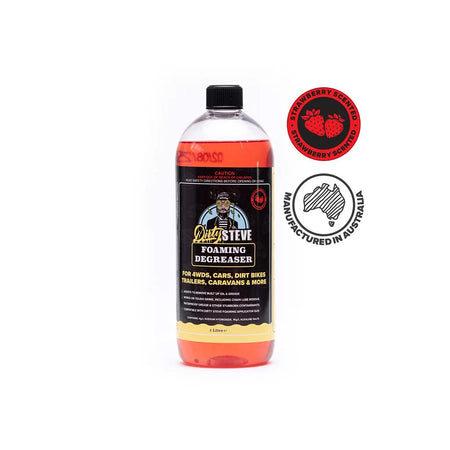 Dirty Steve Strawberry Degreaser is the perfect solution to a professional, heavy duty ‘oil, grease and grime clean’. Suitable for use on Dirt Bikes for removal of chain lube residue, stubborn oil & grime, under trailers & campers and under 4WDs and Vehicles.