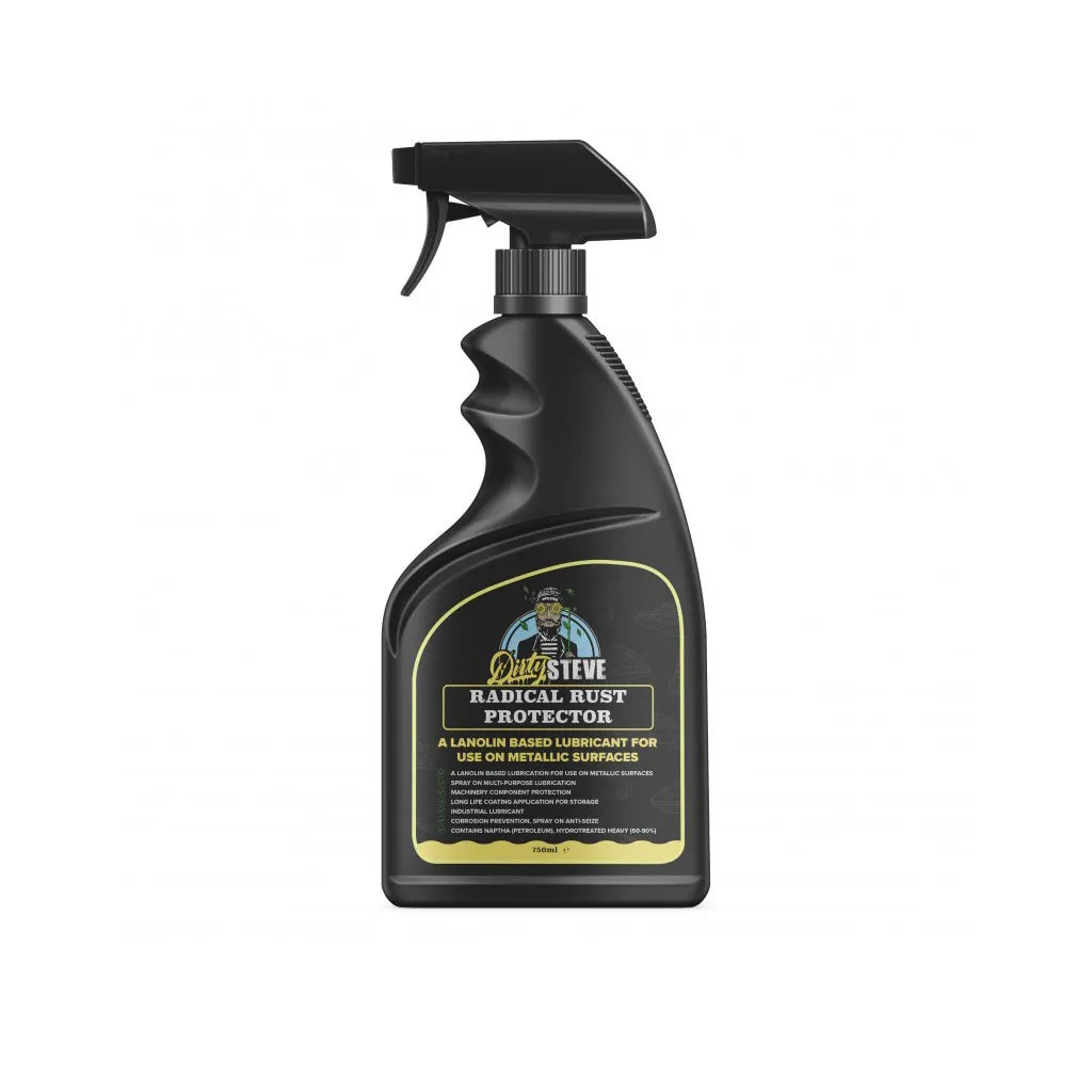Dirty Steve Radical Rust Protection is formulated to assist in rust prevention and corrosion protection on metal components and metallic surfaces on 4WD's, Cars, Trailers, Boats & Marine Water-Craft Outboard Motors. Ideal for use as a lubricant, to help prevent metal moving parts from seizing. Our Lanolin-based easy-spray application is designed to be applied directly to surfaces, in preparation for use and left to dry to form a protective coating resistant to damaging salt, water, acid and humidity. Dirty Steve Radical Rust Protection is best applied before and after use of your 4WD, Boat, Jet-Ski or Trailer. Radical Rust Protection can be applied beneath vehicle & trailer guards, including chassis, axles, winch cables, springs, gear box control cables, steering cables, metal components and more.