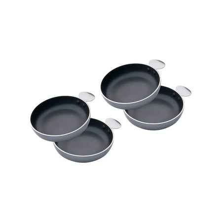 This set of 4 non-stick ceramic coated aluminum egg/tapas pans is ideal for cooking the perfect egg to suit individual tastes. They are also excellent for creating tasty tapas. They are easy to clean, light-weight and can be used in BBQs, small gas hobs or any camp stove.