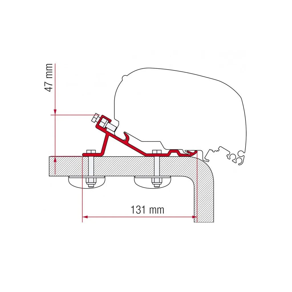 These brackets are designed to fit a Fiamma F80 awning on top of a flat surface.