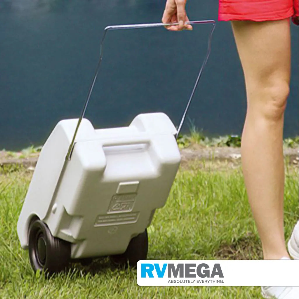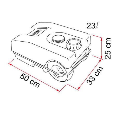 Practical and portable 23 litre waste water tank with total discharge cap.