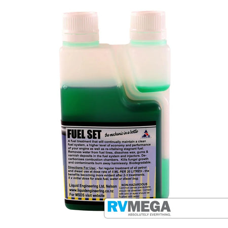 The regular use of Fuel Set promotes clean and efficient combustion of fuels reducing emissions of particulate matter and unburned carbon hydrocarbons. Under normal running conditions Fuel Set is burned away completely as carbon dioxide and water. Fuel-Set also keeps your entire fuel system clean without using hydrocarbons, sulphur, phosphorous, nitrogen or metallic ingredients.
