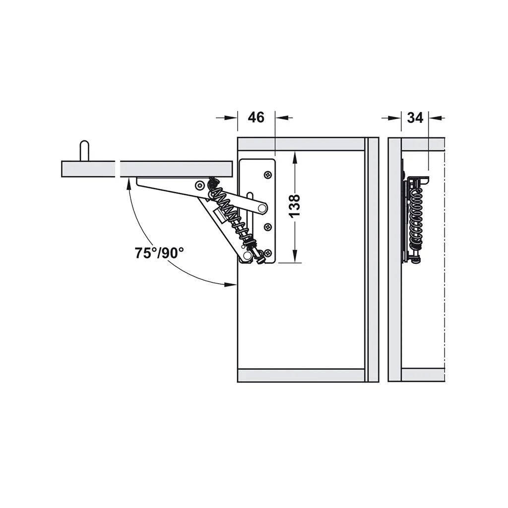 Stay flap fitting, for wooden flaps or flaps with wide aluminium frame.