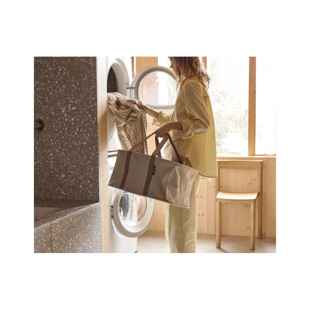 This handy laundry basket is made from durable fabric that holds its shape, even when empty, and comfortably holds a full load of washing. It's moisture-resistant on the inside, making it suitable for damp laundry. It features a rigid base and strong, woven handles that make it easy to carry one-handed around your home or to the washing line. After use, the basket folds flat so it can be easily stored in narrow spaces, such as on top of or beside a washing machine.