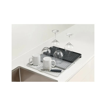 This handy draining board can be extended to over twice its size to provide a high-capacity draining space wherever you need it. Simply place on a flat surface and pull each end to expand. Each tier features a wide platform for a variety of washing up and raised ribs to prevent water being trapped inside cups and glasses. To drain, simply push the tiers together again, lift and pour the excess water away via the handy spout. Its compact size when collapsed means it’s perfect for storing under the sink or inside a cupboard. Wash and dry by hand.