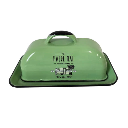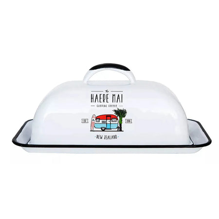 Enamel butter dish with a Kiwiana summer design from Moana Road.