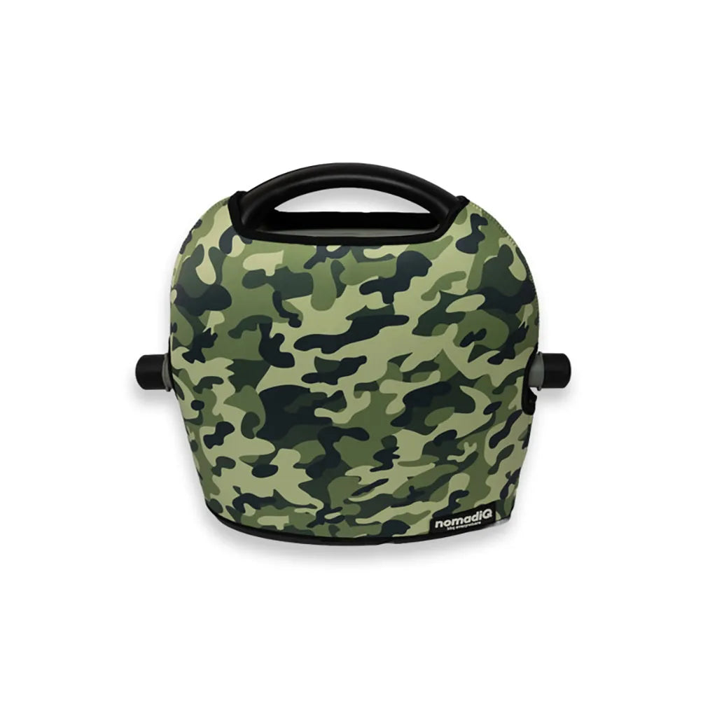 The nomadiQ Protection Pouch Limited Editions are made of neoprene, making it strong and durable, while also soft and lightweight. It covers your nomadiQ BBQ while moving through the great New Zealand outdoors. The strap on the back allows you to store drip trays and the regulator.