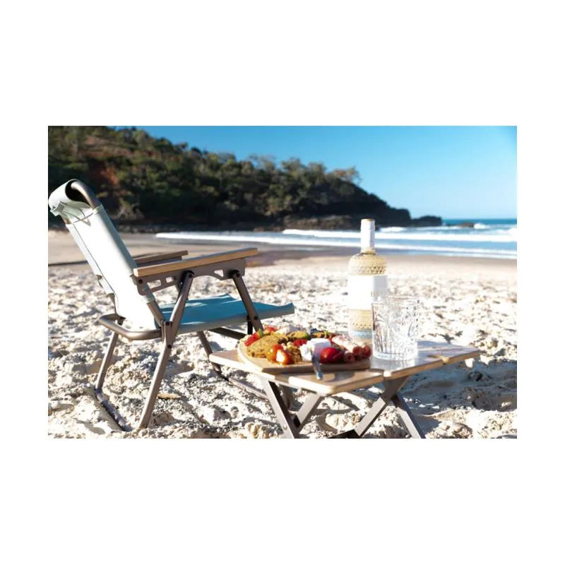 The cutest table on the sand! This bamboo beach table is compact and features 4 functional wine glass holders allowing you to have some drinks during long beach days to keep you refreshed. The premium bamboo and aluminium construction will ensure you have a stable base to look after your food and drinks.