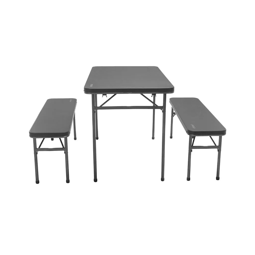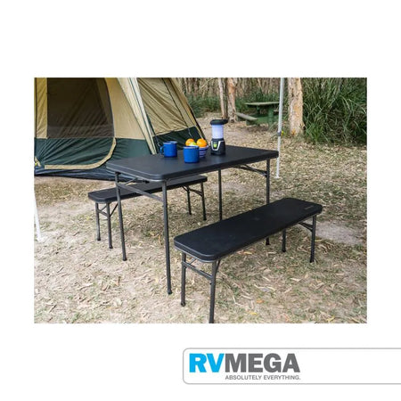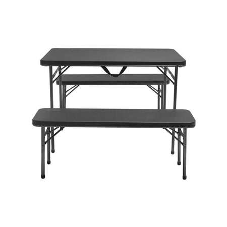 - Corrosion resistant steel frame under table top and benches for exceptional durability