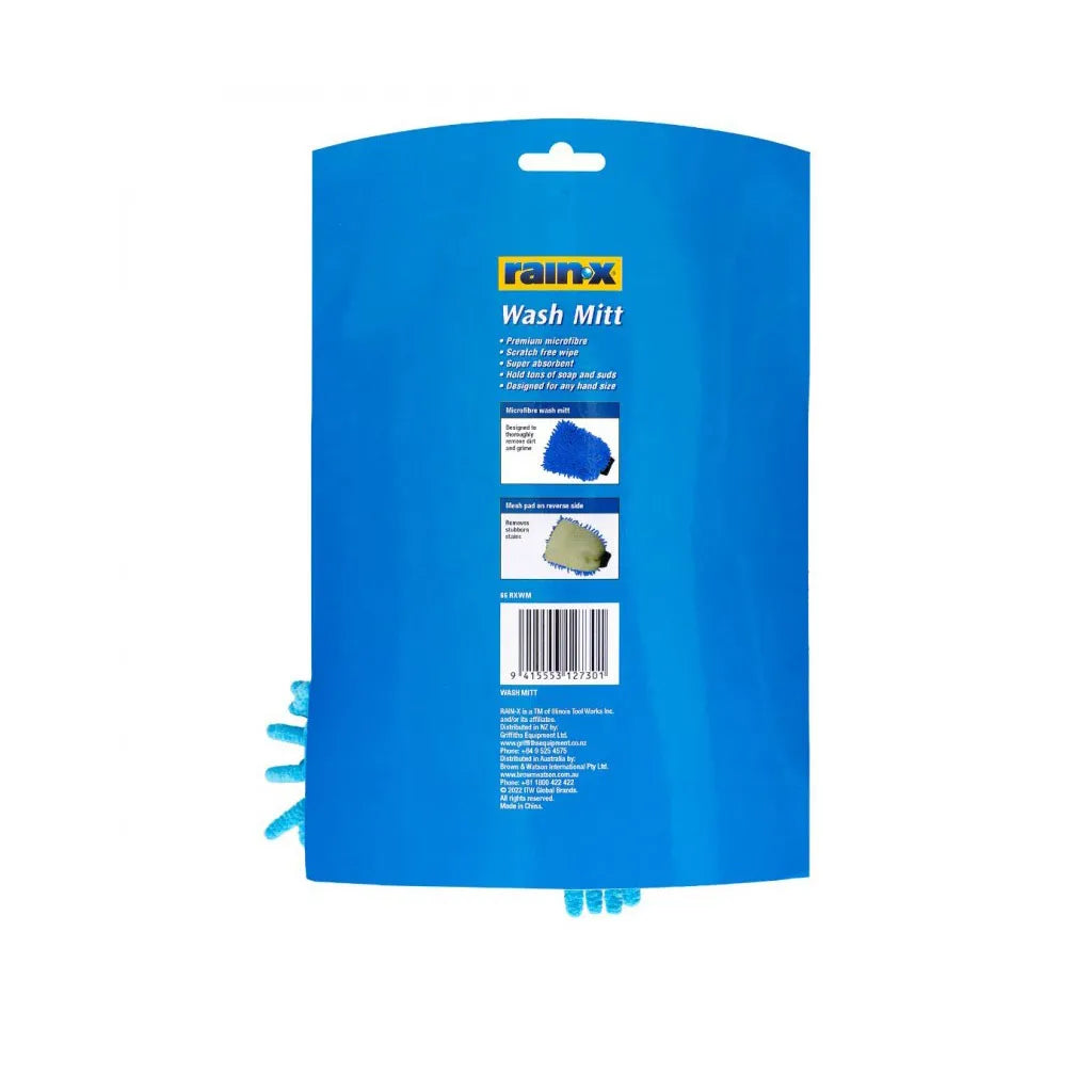 Rainx-X's brand-new premium and super absorbent microfibre wash mitt is designed to hold water and soap making your wash easier, faster, and more efficient. The gentle microfiber polishing your car will not leave any scratches on your car's surface. Safely use it on your car, truck, motorcycle, SUV, RV, or boat! The high density microfibre also acts as a dry duster which grabs and attracts fine dust effectively, makes your cleaning a breeze.