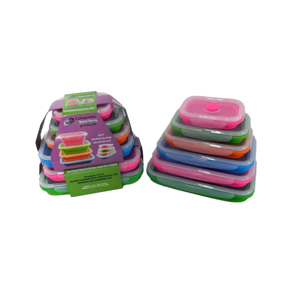 Introducing our Collapsible Silicone Rectangular Containers Pack - a set of 6 versatile and space-saving storage solutions that are perfect for any home, caravan, RV, or boat. These containers are not only practical but also environmentally friendly as they are BPA-free.