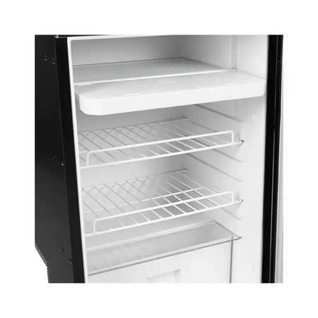 Designed for convenience, the Sphere UCF83R includes a reversible door to suit different layouts, an interior LED light for visibility in low-light conditions, and removable wire shelves for flexible storage. Built for durability, it features shockproof construction to handle rough terrain and operates quietly at =45dB, ensuring minimal disturbance inside your vehicle.