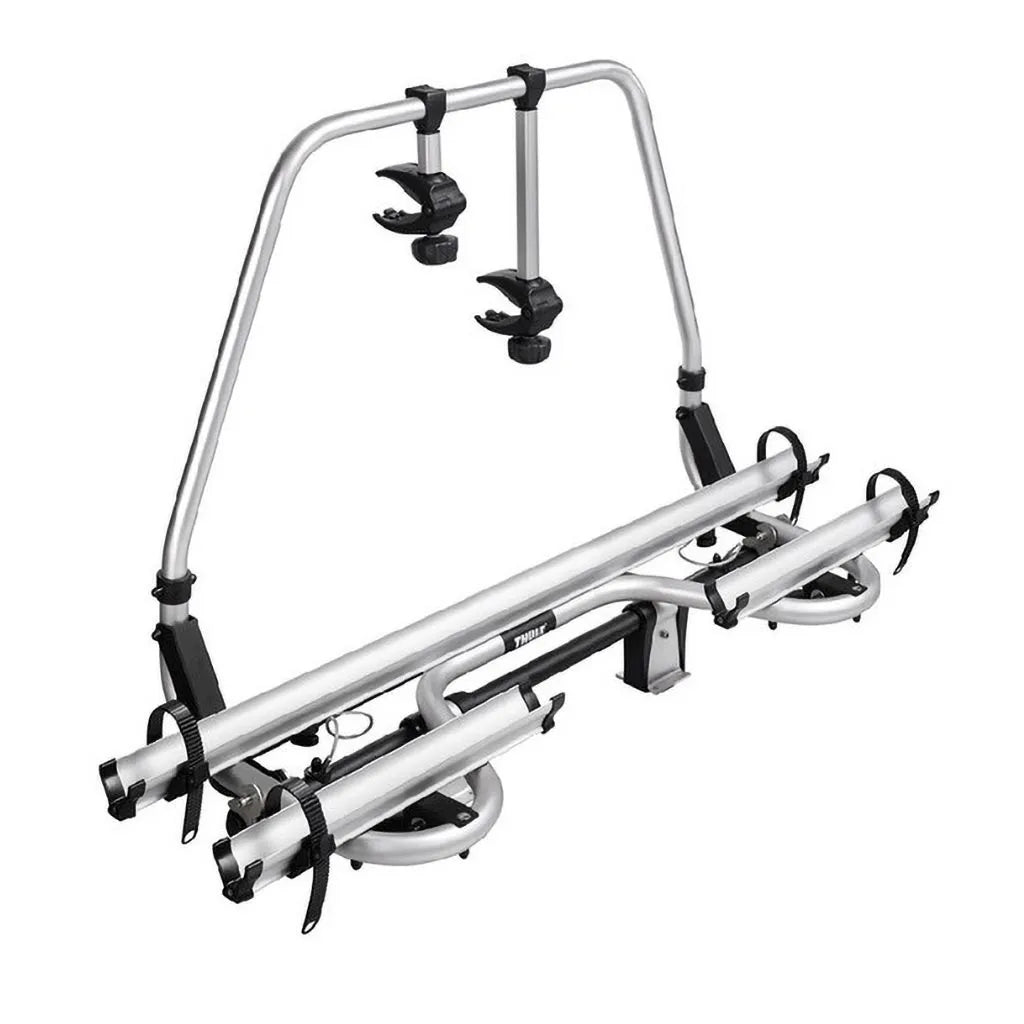 Thule Caravan bike carrier designed for A-Frames, fully tilt-able making easy access to the front locker of the caravan.