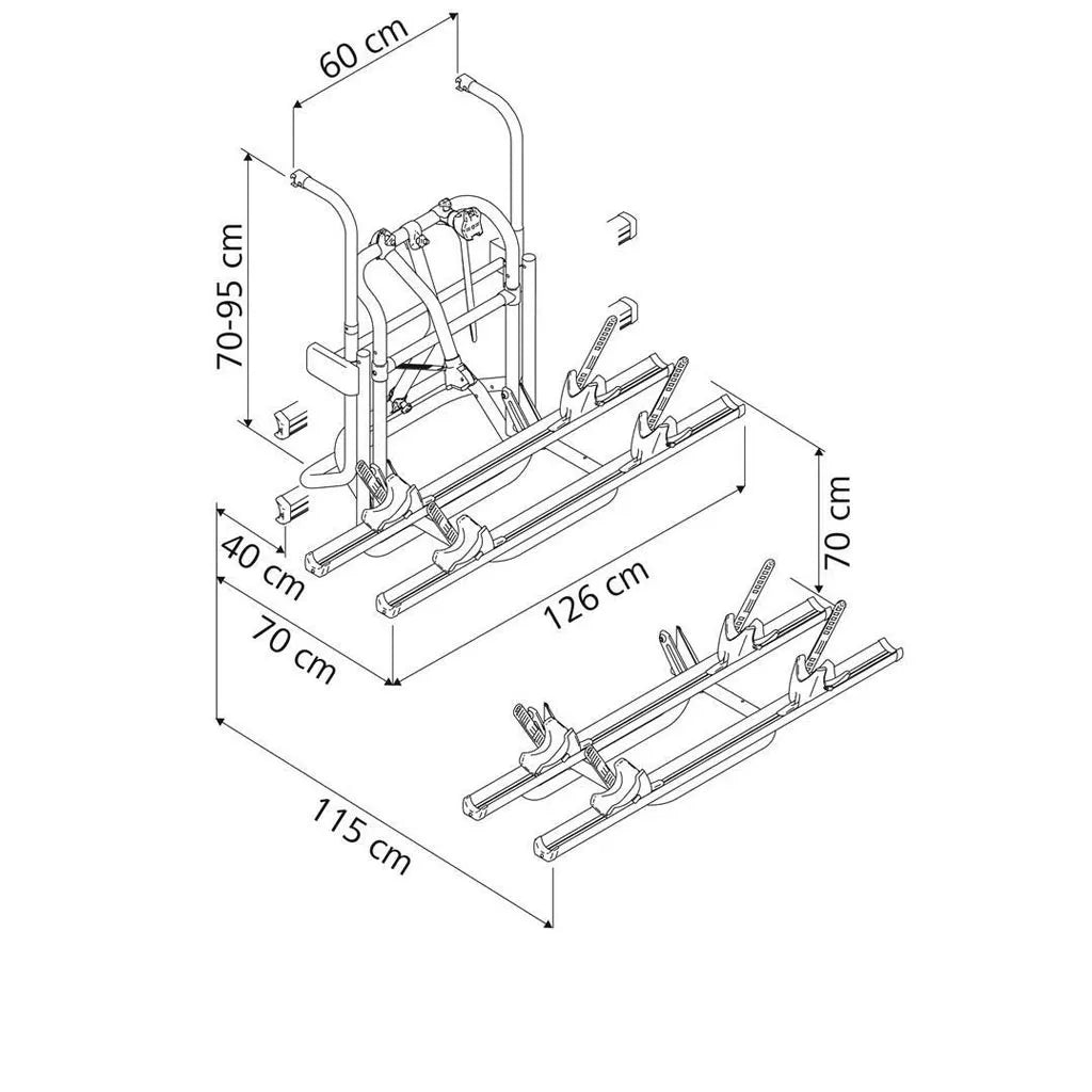 Designed for a stable and solid attachment to the rear wall of a motorhome or caravan. Loads effortlessly - Easy up, easy down.